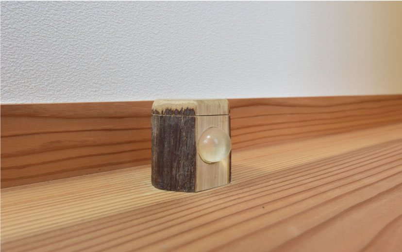 それに寄り添うかたちで枝からできた戸当たりは森林組合の遊び心で作成♬