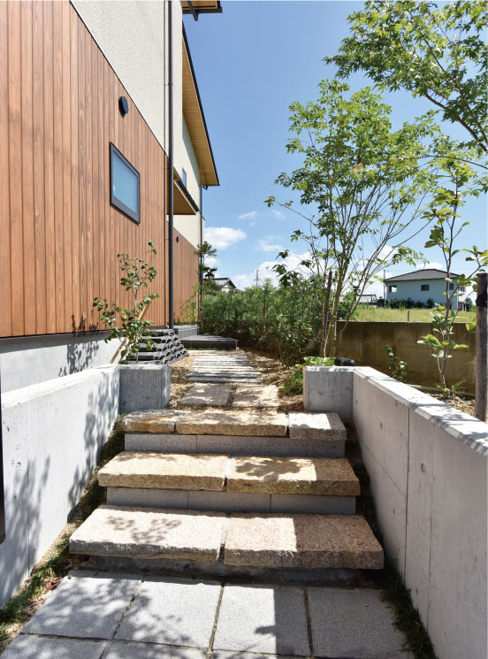 周辺には旧家が並んでおり、軒天や外壁に杉板貼りをほどこした和モダンな外観は時間を経てもいっそう景観とマッチします。